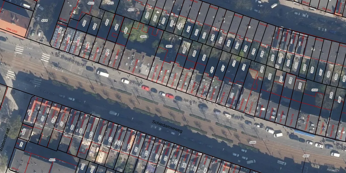 Schiedamseweg 103-B-01 is gelegen op kadastraal perceel DHV00H3848. Deze kadastrale aanduiding is uniek en wordt gebruikt door het Kadaster om eigendomsrechten en andere zakelijke rechten vast te leggen. Het perceel maakt onderdeel uit van de kadastrale gemeente Delfshaven.