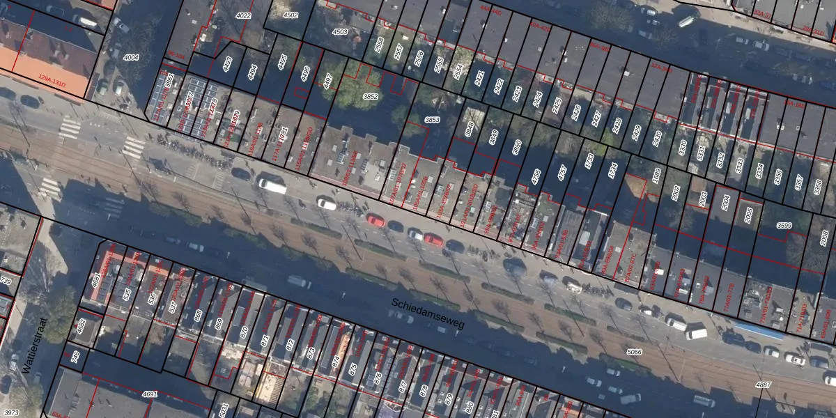 Schiedamseweg 105-A-01 is gelegen op kadastraal perceel DHV00H3853. Deze kadastrale aanduiding is uniek en wordt gebruikt door het Kadaster om eigendomsrechten en andere zakelijke rechten vast te leggen. Het perceel maakt onderdeel uit van de kadastrale gemeente Delfshaven.