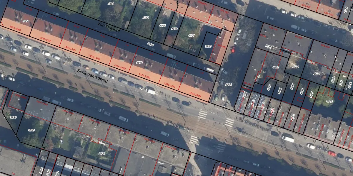 Schiedamseweg 133-D is gelegen op kadastraal perceel DHV00H3959. Deze kadastrale aanduiding is uniek en wordt gebruikt door het Kadaster om eigendomsrechten en andere zakelijke rechten vast te leggen. Het perceel maakt onderdeel uit van de kadastrale gemeente Delfshaven.