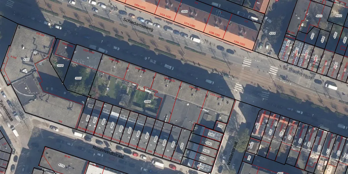 Schiedamseweg 140-C is gelegen op kadastraal perceel DHV00H3996. Deze kadastrale aanduiding is uniek en wordt gebruikt door het Kadaster om eigendomsrechten en andere zakelijke rechten vast te leggen. Het perceel maakt onderdeel uit van de kadastrale gemeente Delfshaven.