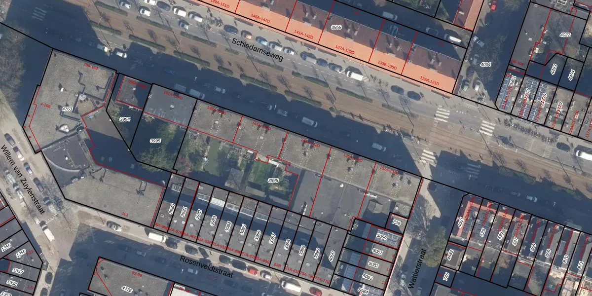 Schiedamseweg 142-C is gelegen op kadastraal perceel DHV00H3996. Deze kadastrale aanduiding is uniek en wordt gebruikt door het Kadaster om eigendomsrechten en andere zakelijke rechten vast te leggen. Het perceel maakt onderdeel uit van de kadastrale gemeente Delfshaven.