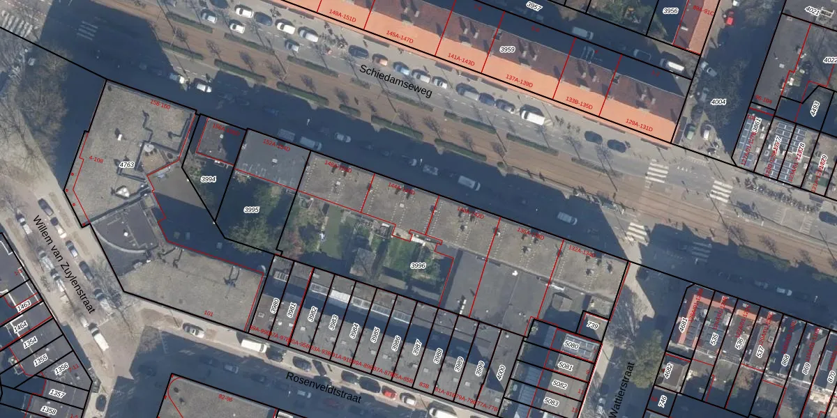 Schiedamseweg 144-C is gelegen op kadastraal perceel DHV00H3996. Deze kadastrale aanduiding is uniek en wordt gebruikt door het Kadaster om eigendomsrechten en andere zakelijke rechten vast te leggen. Het perceel maakt onderdeel uit van de kadastrale gemeente Delfshaven.
