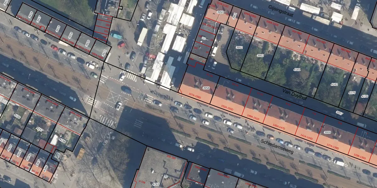 Schiedamseweg 159-D is gelegen op kadastraal perceel DHV00H3958. Deze kadastrale aanduiding is uniek en wordt gebruikt door het Kadaster om eigendomsrechten en andere zakelijke rechten vast te leggen. Het perceel maakt onderdeel uit van de kadastrale gemeente Delfshaven.