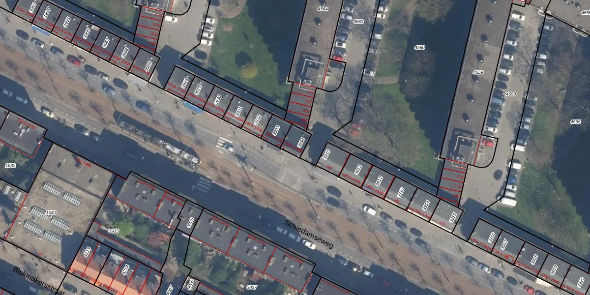 Schiedamseweg 189-B is gelegen op kadastraal perceel DHV00H3934. Deze kadastrale aanduiding is uniek en wordt gebruikt door het Kadaster om eigendomsrechten en andere zakelijke rechten vast te leggen. Het perceel maakt onderdeel uit van de kadastrale gemeente Delfshaven.