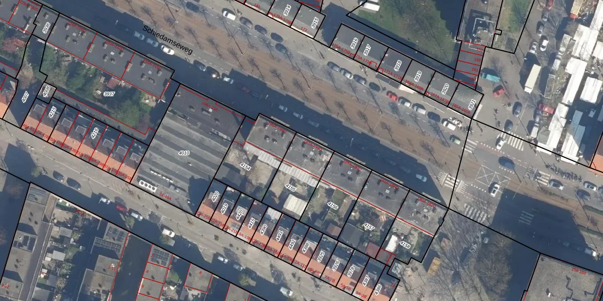 Schiedamseweg 194-B is gelegen op kadastraal perceel DHV00H4155. Deze kadastrale aanduiding is uniek en wordt gebruikt door het Kadaster om eigendomsrechten en andere zakelijke rechten vast te leggen. Het perceel maakt onderdeel uit van de kadastrale gemeente Delfshaven.