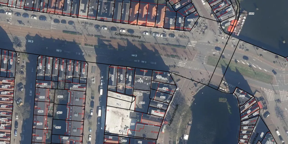 Schiedamseweg 4-A-01 is gelegen op kadastraal perceel DHV00A4283. Deze kadastrale aanduiding is uniek en wordt gebruikt door het Kadaster om eigendomsrechten en andere zakelijke rechten vast te leggen. Het perceel maakt onderdeel uit van de kadastrale gemeente Delfshaven.