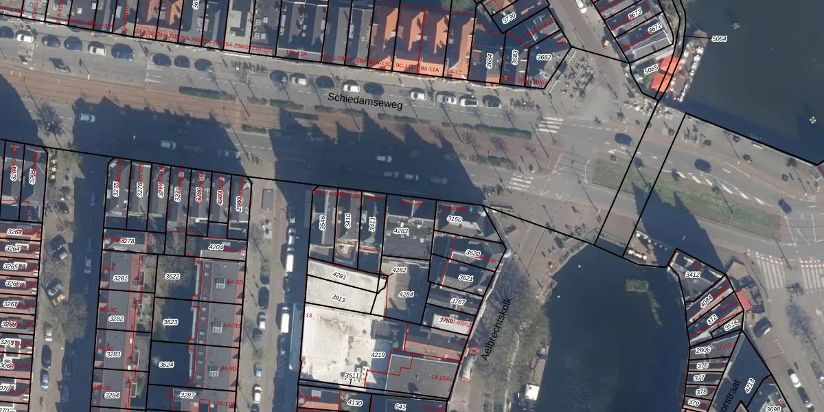 Schiedamseweg 4-E is gelegen op kadastraal perceel DHV00A4283. Deze kadastrale aanduiding is uniek en wordt gebruikt door het Kadaster om eigendomsrechten en andere zakelijke rechten vast te leggen. Het perceel maakt onderdeel uit van de kadastrale gemeente Delfshaven.