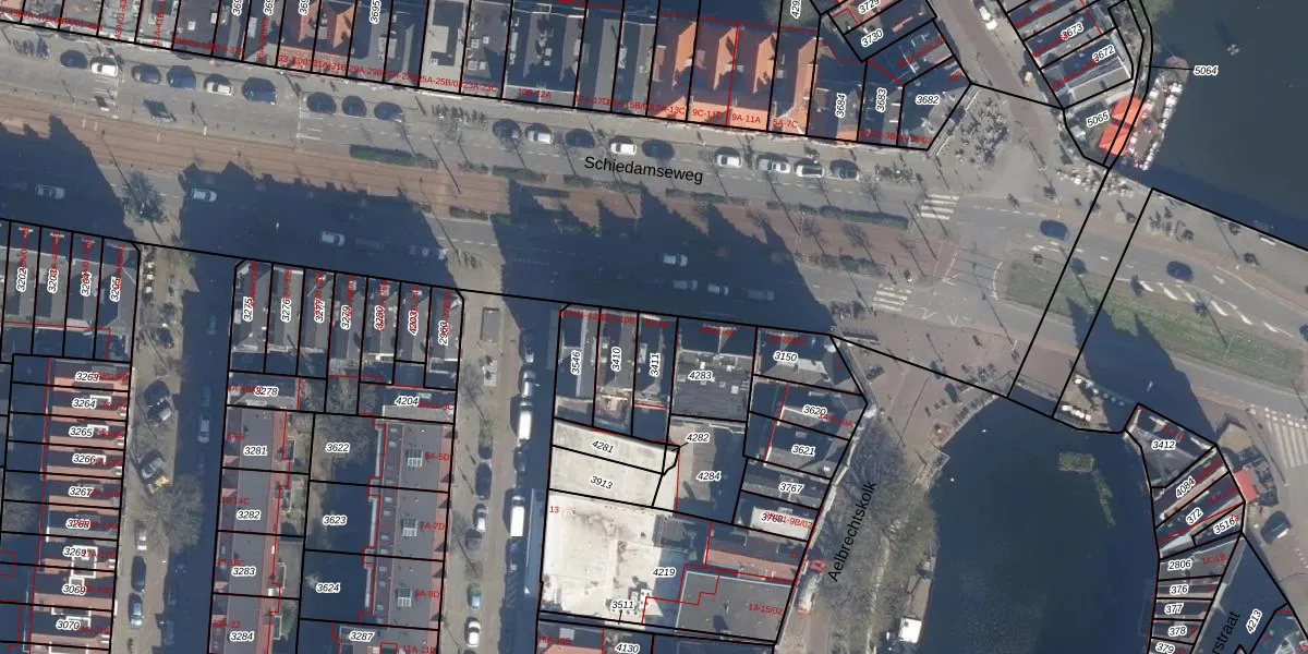 Schiedamseweg 8-A is gelegen op kadastraal perceel DHV00A3411. Deze kadastrale aanduiding is uniek en wordt gebruikt door het Kadaster om eigendomsrechten en andere zakelijke rechten vast te leggen. Het perceel maakt onderdeel uit van de kadastrale gemeente Delfshaven.