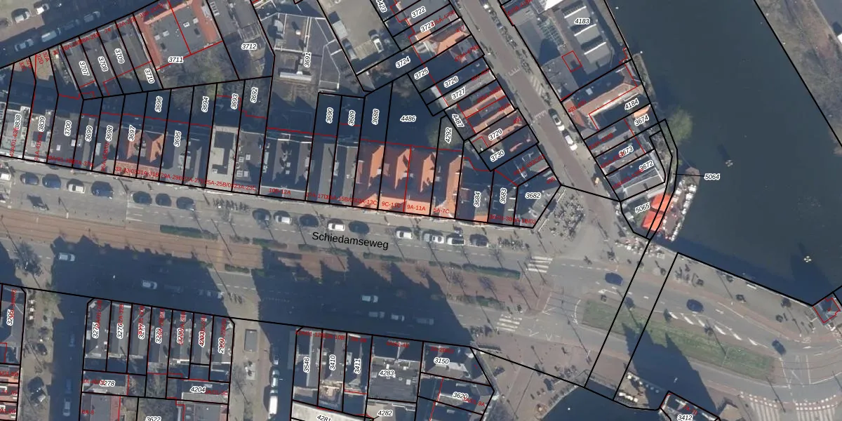 Schiedamseweg 9-C is gelegen op kadastraal perceel DHV00H4486. Deze kadastrale aanduiding is uniek en wordt gebruikt door het Kadaster om eigendomsrechten en andere zakelijke rechten vast te leggen. Het perceel maakt onderdeel uit van de kadastrale gemeente Delfshaven.