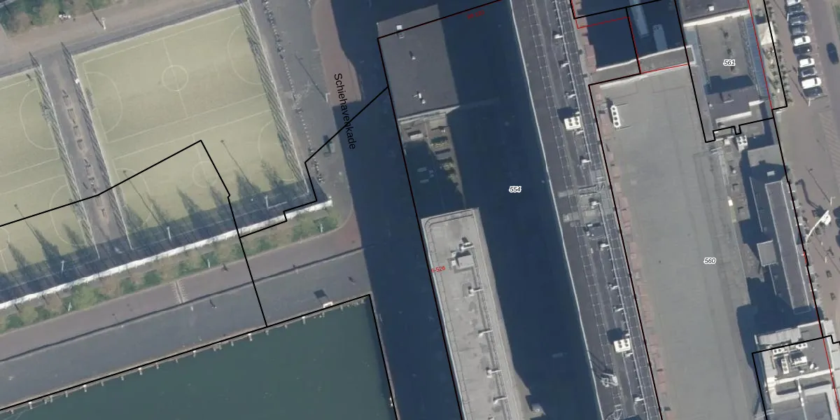 Het perceel waarop Schiehavenkade 18 staat heeft een oppervlakte van 6735 m². Dit is een zeer groot perceel. De perceeloppervlakte wordt geregistreerd door het Kadaster. Gedetailleerde informatie over de maten van dit perceel kunt u vinden in het rapport Kadastrale kaart met maatvoering van Schiehavenkade 18.