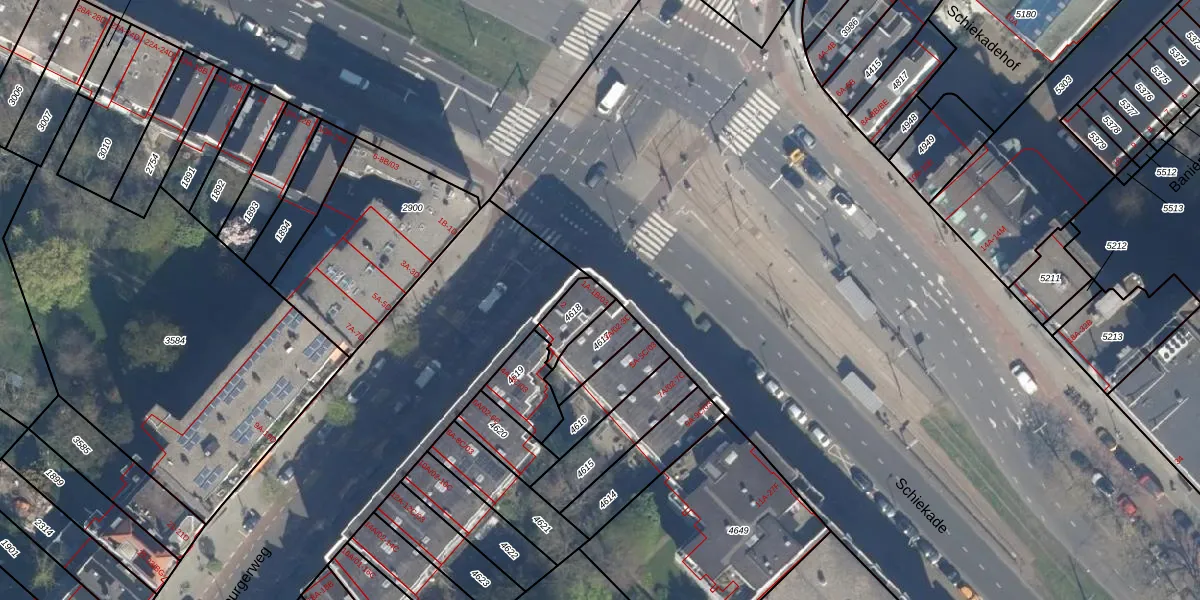 Schiekade 1-B-02 is gelegen op kadastraal perceel RTD06S4618. Deze kadastrale aanduiding is uniek en wordt gebruikt door het Kadaster om eigendomsrechten en andere zakelijke rechten vast te leggen. Het perceel maakt onderdeel uit van de kadastrale gemeente Rotterdam.