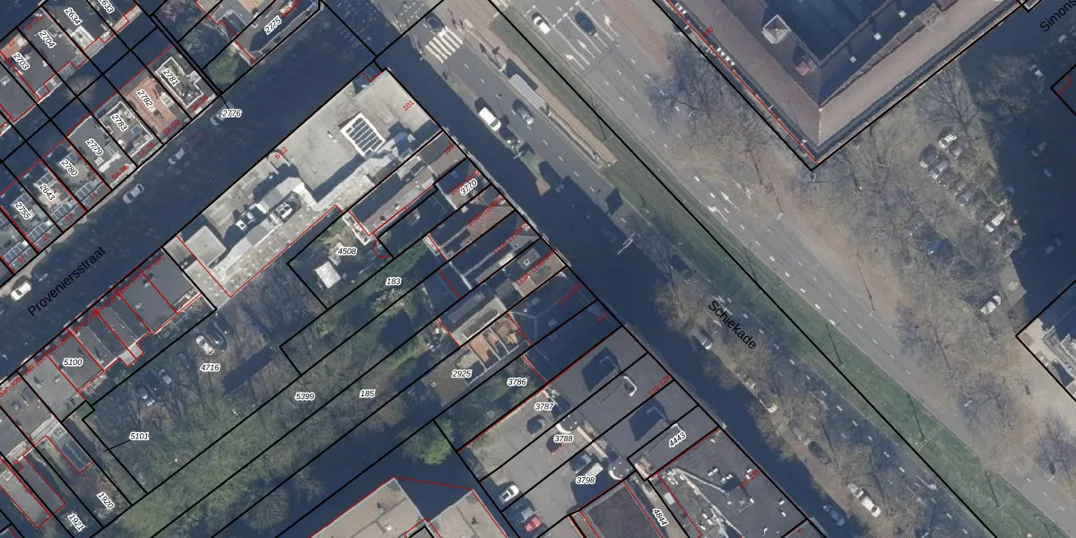 Schiekade 113-B-03A is gelegen op kadastraal perceel RTD06S185. Deze kadastrale aanduiding is uniek en wordt gebruikt door het Kadaster om eigendomsrechten en andere zakelijke rechten vast te leggen. Het perceel maakt onderdeel uit van de kadastrale gemeente Rotterdam.