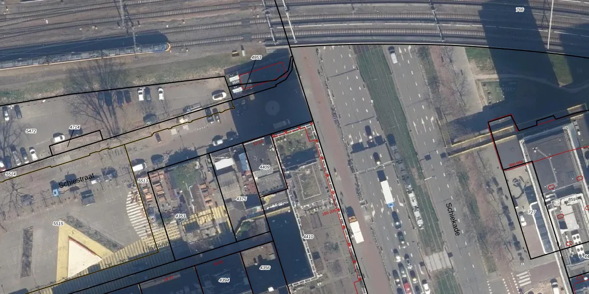 Schiekade 185 is gelegen op kadastraal perceel RTD06S4410. Deze kadastrale aanduiding is uniek en wordt gebruikt door het Kadaster om eigendomsrechten en andere zakelijke rechten vast te leggen. Het perceel maakt onderdeel uit van de kadastrale gemeente Rotterdam.