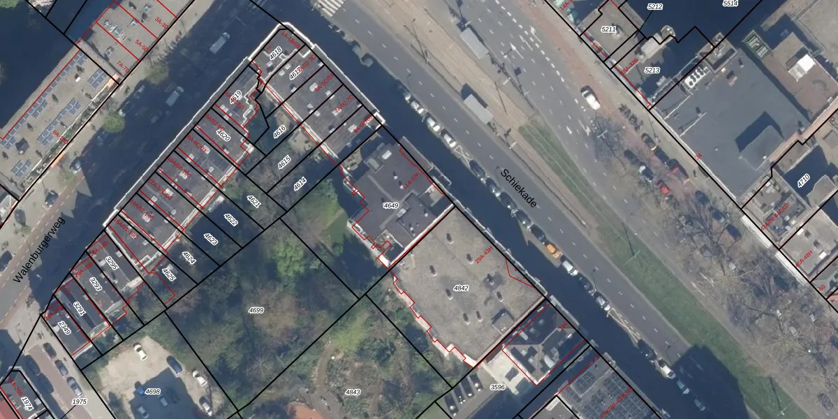 Schiekade 19-A is gelegen op kadastraal perceel RTD06S4649. Deze kadastrale aanduiding is uniek en wordt gebruikt door het Kadaster om eigendomsrechten en andere zakelijke rechten vast te leggen. Het perceel maakt onderdeel uit van de kadastrale gemeente Rotterdam.