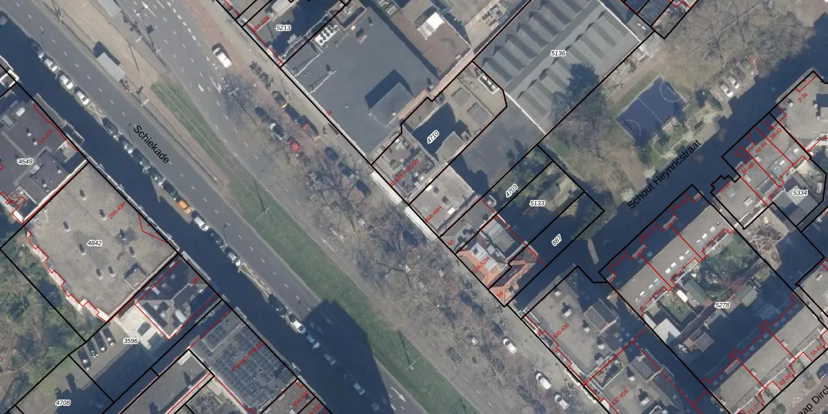 Schiekade 46-B is gelegen op kadastraal perceel RTD08X5136. Deze kadastrale aanduiding is uniek en wordt gebruikt door het Kadaster om eigendomsrechten en andere zakelijke rechten vast te leggen. Het perceel maakt onderdeel uit van de kadastrale gemeente Rotterdam.