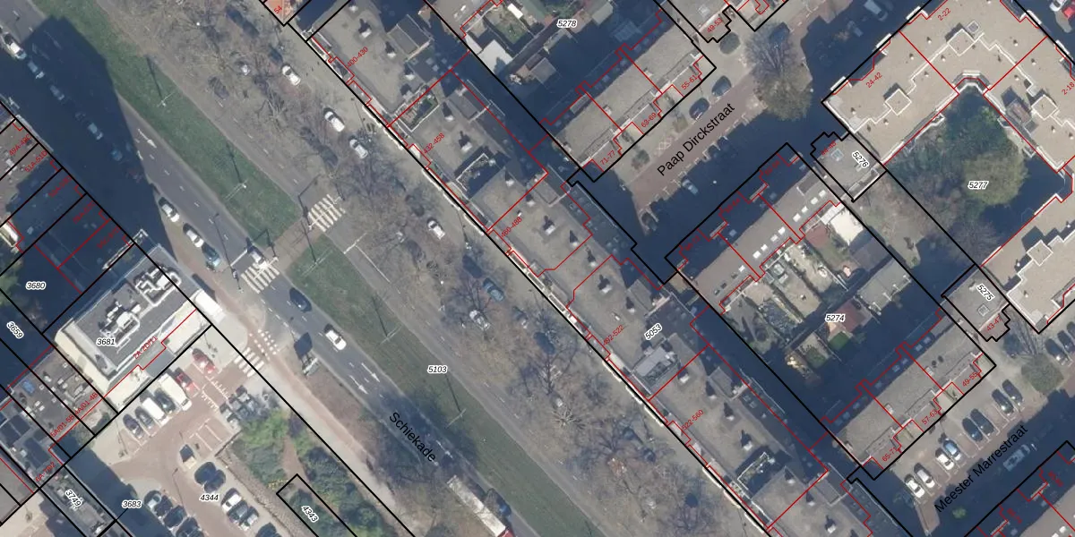 Het perceel waarop Schiekade 488 staat heeft een oppervlakte van 3406 m². Dit is een zeer groot perceel. De perceeloppervlakte wordt geregistreerd door het Kadaster. Gedetailleerde informatie over de maten van dit perceel kunt u vinden in het rapport Kadastrale kaart met maatvoering van Schiekade 488.