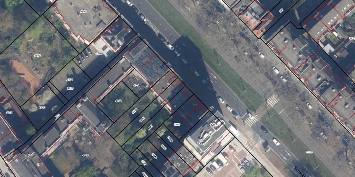 Het perceel waarop Schiekade 51-D staat heeft een oppervlakte van 325 m². Dit is een groot perceel. De perceeloppervlakte wordt geregistreerd door het Kadaster. Gedetailleerde informatie over de maten van dit perceel kunt u vinden in het rapport Kadastrale kaart met maatvoering van Schiekade 51-D.