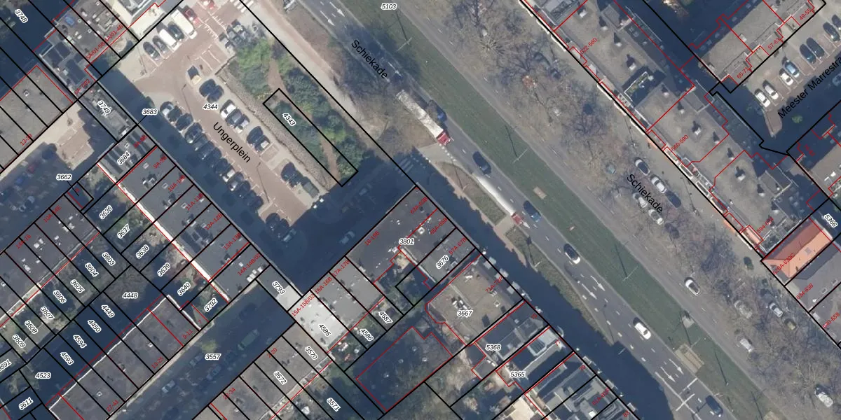 Het perceel waarop Schiekade 63-A staat heeft een oppervlakte van 359 m². Dit is een groot perceel. De perceeloppervlakte wordt geregistreerd door het Kadaster. Gedetailleerde informatie over de maten van dit perceel kunt u vinden in het rapport Kadastrale kaart met maatvoering van Schiekade 63-A.