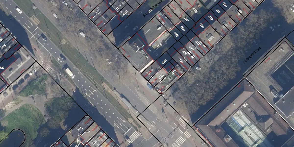Het adres is gelegen op perceel 4405 in de sectie X en de kadastrale gemeente Rotterdam. De kadastrale aanduiding is aldus RTD08-X-4405. De gemiddelde perceelgrootte in Rotterdam is 689,2 m². Dit perceel is kleiner: de perceeloppervlakte bedraagt 161 m². Het grootste perceel in de kadastrale gemeente is 4,0 ha. Het kleinste perceel heeft een oppervlakte van 0 m². Op het perceel zijn 7 adressen aanwezig. De huidige grenzen van het perceel zijn digitaal in de Basisregistratie Kadaster (BRK) geregistreerd op 10-07-2003.