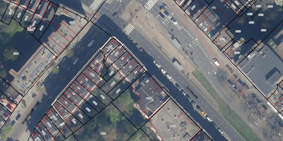 Schiekade 9-B is gelegen op kadastraal perceel RTD06S4614. Deze kadastrale aanduiding is uniek en wordt gebruikt door het Kadaster om eigendomsrechten en andere zakelijke rechten vast te leggen. Het perceel maakt onderdeel uit van de kadastrale gemeente Rotterdam.