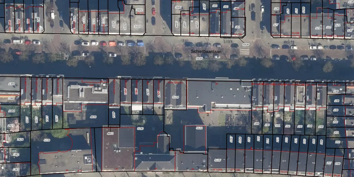 Schietbaanlaan 100-C-01 is gelegen op kadastraal perceel DHV00C5124. Deze kadastrale aanduiding is uniek en wordt gebruikt door het Kadaster om eigendomsrechten en andere zakelijke rechten vast te leggen. Het perceel maakt onderdeel uit van de kadastrale gemeente Delfshaven.