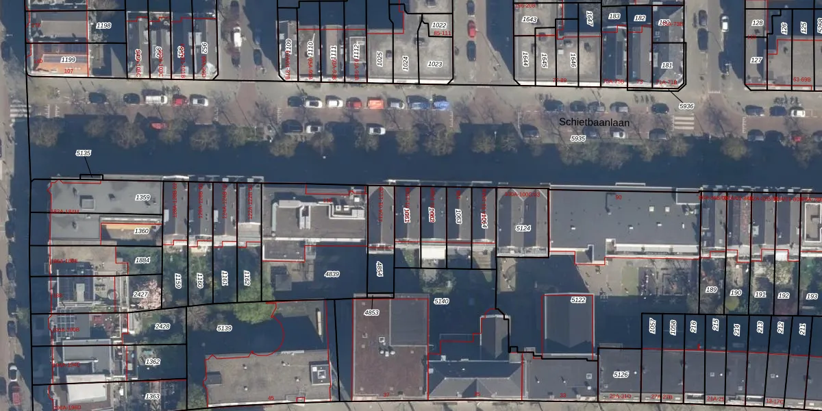 Schietbaanlaan 110-A-02 is gelegen op kadastraal perceel DHV00C1061. Deze kadastrale aanduiding is uniek en wordt gebruikt door het Kadaster om eigendomsrechten en andere zakelijke rechten vast te leggen. Het perceel maakt onderdeel uit van de kadastrale gemeente Delfshaven.