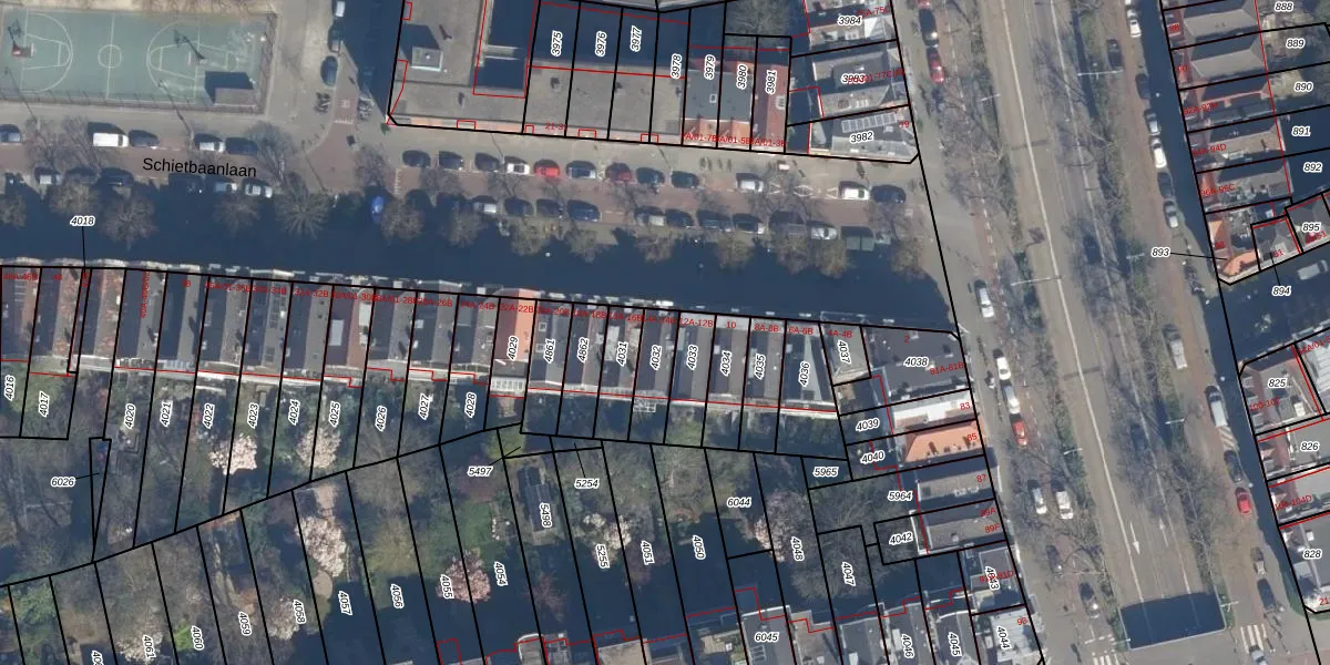 Schietbaanlaan 14-A is gelegen op kadastraal perceel DHV00C4032. Deze kadastrale aanduiding is uniek en wordt gebruikt door het Kadaster om eigendomsrechten en andere zakelijke rechten vast te leggen. Het perceel maakt onderdeel uit van de kadastrale gemeente Delfshaven.