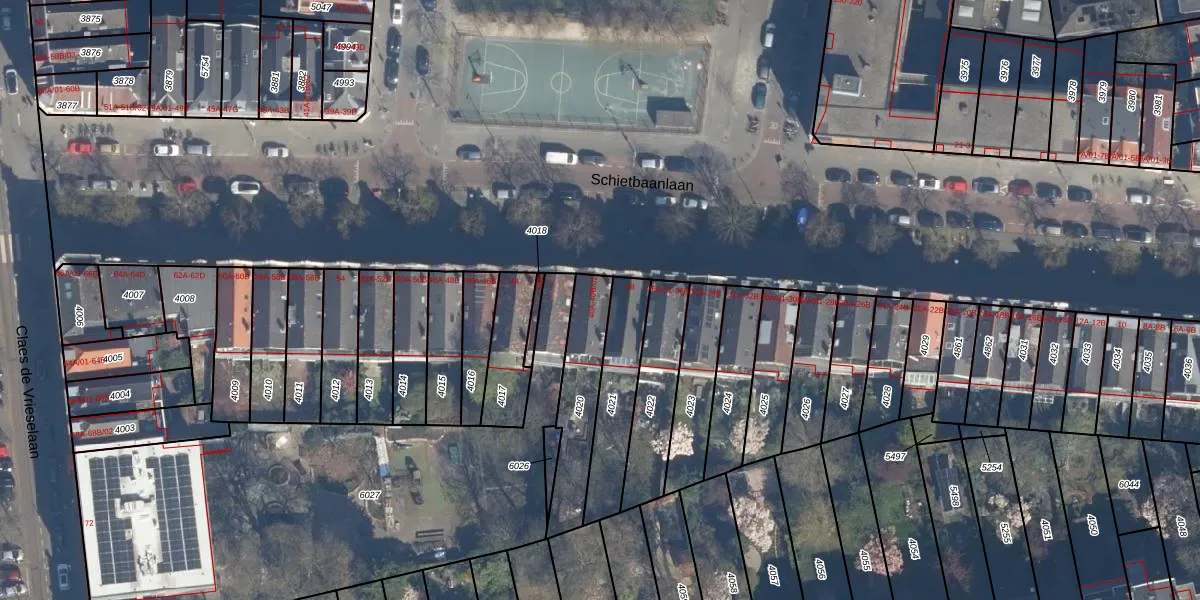 Schietbaanlaan 40-A is gelegen op kadastraal perceel DHV00C4020. Deze kadastrale aanduiding is uniek en wordt gebruikt door het Kadaster om eigendomsrechten en andere zakelijke rechten vast te leggen. Het perceel maakt onderdeel uit van de kadastrale gemeente Delfshaven.