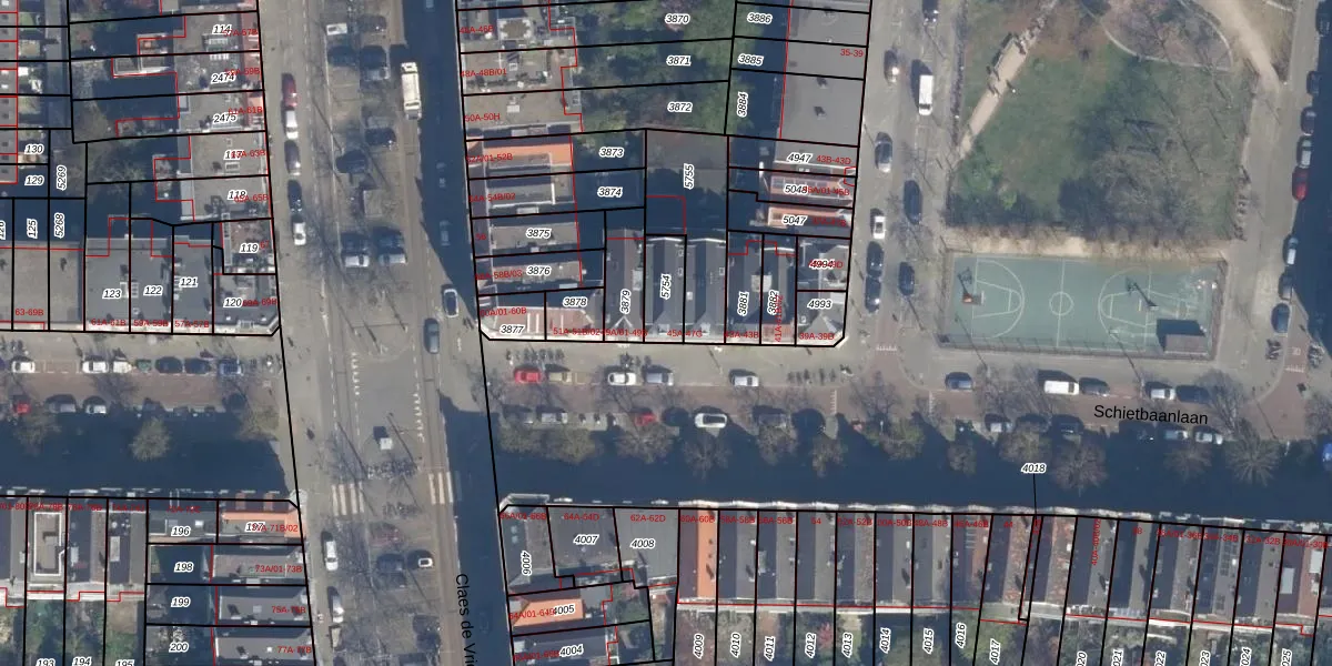 Het perceel waarop Schietbaanlaan 47-D staat heeft een oppervlakte van 100 m². Dit is een middelgroot perceel. De perceeloppervlakte wordt geregistreerd door het Kadaster. Gedetailleerde informatie over de maten van dit perceel kunt u vinden in het rapport Kadastrale kaart met maatvoering van Schietbaanlaan 47-D.