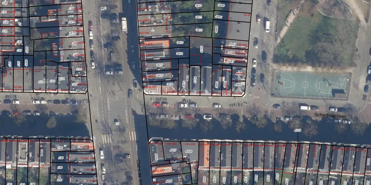 Schietbaanlaan 49-A-01 is gelegen op kadastraal perceel DHV00C3879. Deze kadastrale aanduiding is uniek en wordt gebruikt door het Kadaster om eigendomsrechten en andere zakelijke rechten vast te leggen. Het perceel maakt onderdeel uit van de kadastrale gemeente Delfshaven.