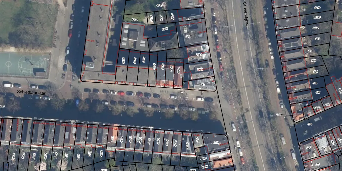 Schietbaanlaan 5-A-01 is gelegen op kadastraal perceel DHV00C3980. Deze kadastrale aanduiding is uniek en wordt gebruikt door het Kadaster om eigendomsrechten en andere zakelijke rechten vast te leggen. Het perceel maakt onderdeel uit van de kadastrale gemeente Delfshaven.