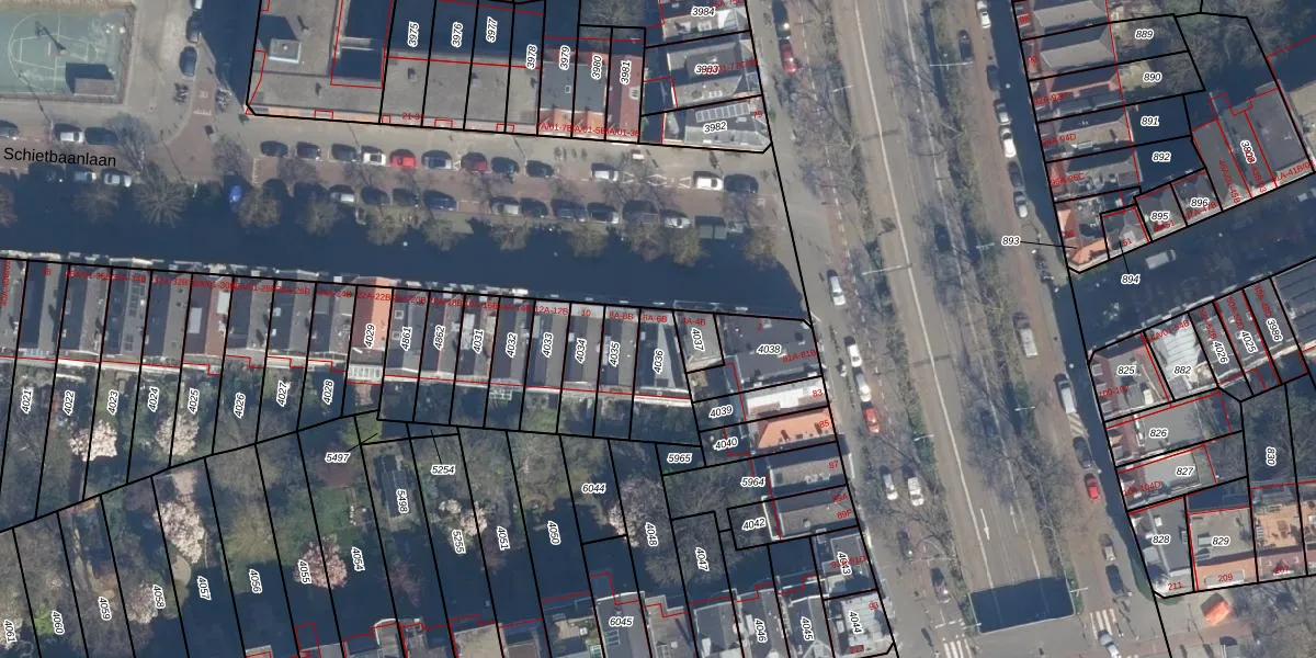 Schietbaanlaan 6-B is gelegen op kadastraal perceel DHV00C4036. Deze kadastrale aanduiding is uniek en wordt gebruikt door het Kadaster om eigendomsrechten en andere zakelijke rechten vast te leggen. Het perceel maakt onderdeel uit van de kadastrale gemeente Delfshaven.