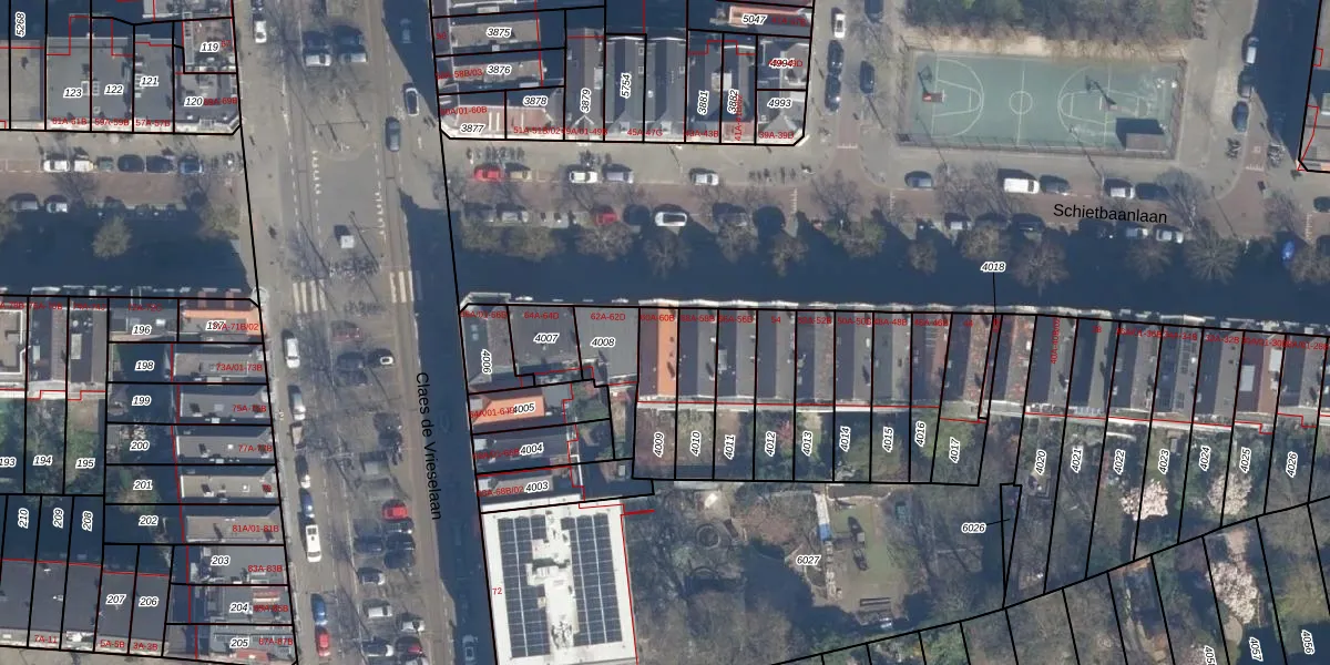 Schietbaanlaan 60-B is gelegen op kadastraal perceel DHV00C4009. Deze kadastrale aanduiding is uniek en wordt gebruikt door het Kadaster om eigendomsrechten en andere zakelijke rechten vast te leggen. Het perceel maakt onderdeel uit van de kadastrale gemeente Delfshaven.