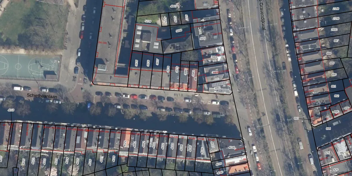 Schietbaanlaan 7-B is gelegen op kadastraal perceel DHV00C3979. Deze kadastrale aanduiding is uniek en wordt gebruikt door het Kadaster om eigendomsrechten en andere zakelijke rechten vast te leggen. Het perceel maakt onderdeel uit van de kadastrale gemeente Delfshaven.