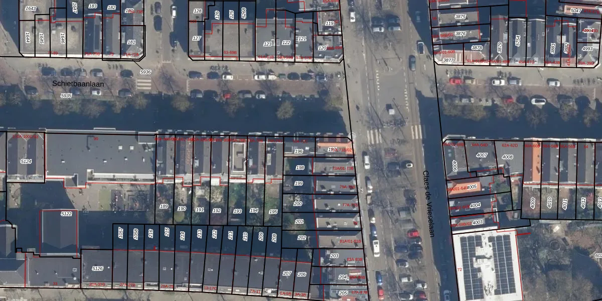 Schietbaanlaan 72-B is gelegen op kadastraal perceel DHV00C196. Deze kadastrale aanduiding is uniek en wordt gebruikt door het Kadaster om eigendomsrechten en andere zakelijke rechten vast te leggen. Het perceel maakt onderdeel uit van de kadastrale gemeente Delfshaven.