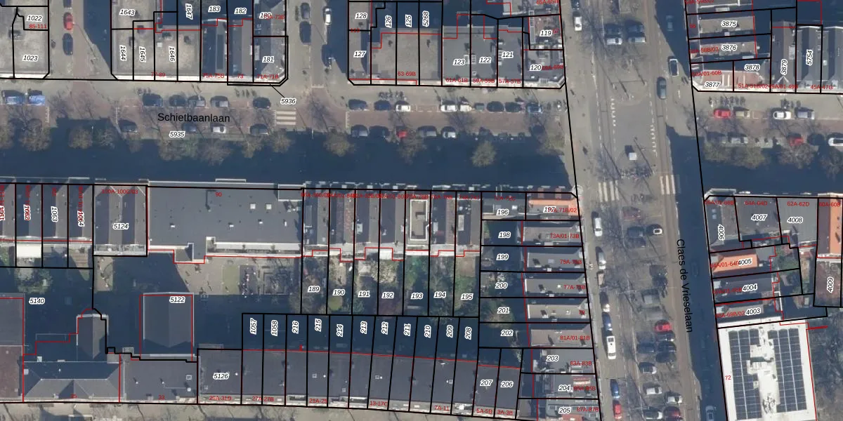 Het perceel waarop Schietbaanlaan 78-B staat heeft een oppervlakte van 180 m². Dit is een middelgroot perceel. De perceeloppervlakte wordt geregistreerd door het Kadaster. Gedetailleerde informatie over de maten van dit perceel kunt u vinden in het rapport Kadastrale kaart met maatvoering van Schietbaanlaan 78-B.