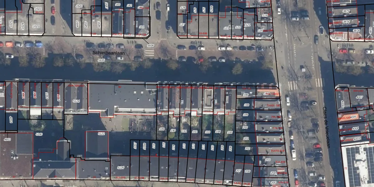 Schietbaanlaan 82-A is gelegen op kadastraal perceel DHV00C191. Deze kadastrale aanduiding is uniek en wordt gebruikt door het Kadaster om eigendomsrechten en andere zakelijke rechten vast te leggen. Het perceel maakt onderdeel uit van de kadastrale gemeente Delfshaven.