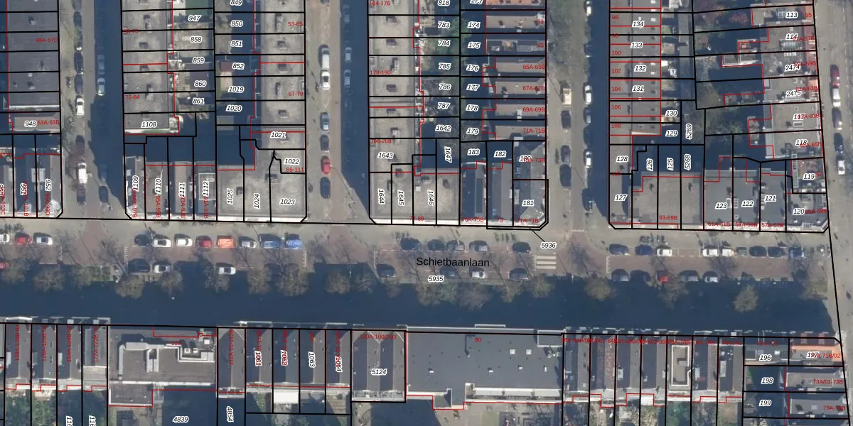 Schietbaanlaan 87 is gelegen op kadastraal perceel DHV00C1646. Deze kadastrale aanduiding is uniek en wordt gebruikt door het Kadaster om eigendomsrechten en andere zakelijke rechten vast te leggen. Het perceel maakt onderdeel uit van de kadastrale gemeente Delfshaven.
