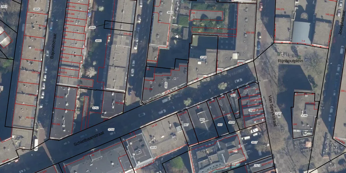 Schietbaanstraat 19-B is gelegen op kadastraal perceel DHV00D3806. Deze kadastrale aanduiding is uniek en wordt gebruikt door het Kadaster om eigendomsrechten en andere zakelijke rechten vast te leggen. Het perceel maakt onderdeel uit van de kadastrale gemeente Delfshaven.