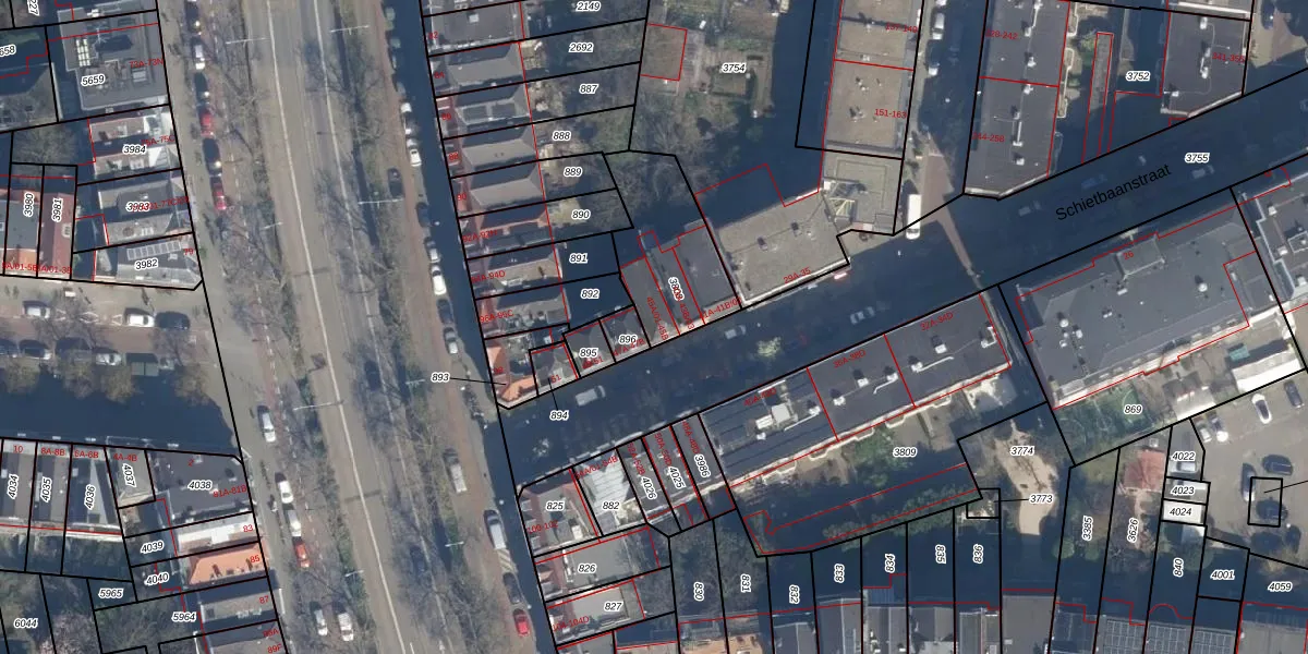 Schietbaanstraat 45-A-01 is gelegen op kadastraal perceel DHV00D3808. Deze kadastrale aanduiding is uniek en wordt gebruikt door het Kadaster om eigendomsrechten en andere zakelijke rechten vast te leggen. Het perceel maakt onderdeel uit van de kadastrale gemeente Delfshaven.