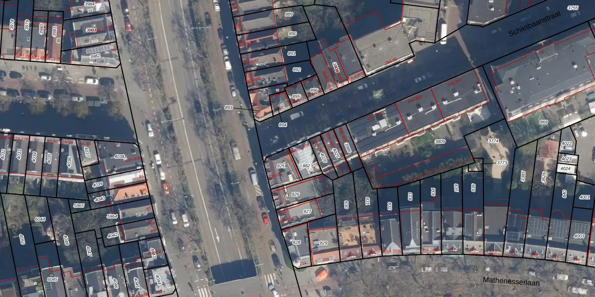 Schietbaanstraat 54-A-03 is gelegen op kadastraal perceel DHV00D882. Deze kadastrale aanduiding is uniek en wordt gebruikt door het Kadaster om eigendomsrechten en andere zakelijke rechten vast te leggen. Het perceel maakt onderdeel uit van de kadastrale gemeente Delfshaven.