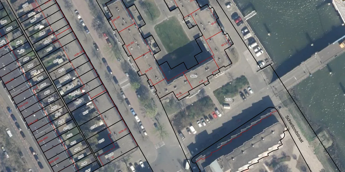 Schietloodstraat 23 is gelegen op kadastraal perceel RTD05Q5651. Deze kadastrale aanduiding is uniek en wordt gebruikt door het Kadaster om eigendomsrechten en andere zakelijke rechten vast te leggen. Het perceel maakt onderdeel uit van de kadastrale gemeente Rotterdam.