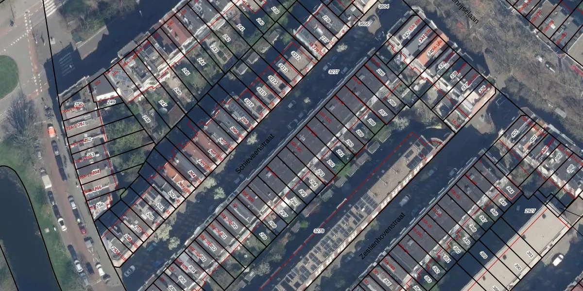 Schieveenstraat 18-A is gelegen op kadastraal perceel RTD10AB293. Deze kadastrale aanduiding is uniek en wordt gebruikt door het Kadaster om eigendomsrechten en andere zakelijke rechten vast te leggen. Het perceel maakt onderdeel uit van de kadastrale gemeente Rotterdam.