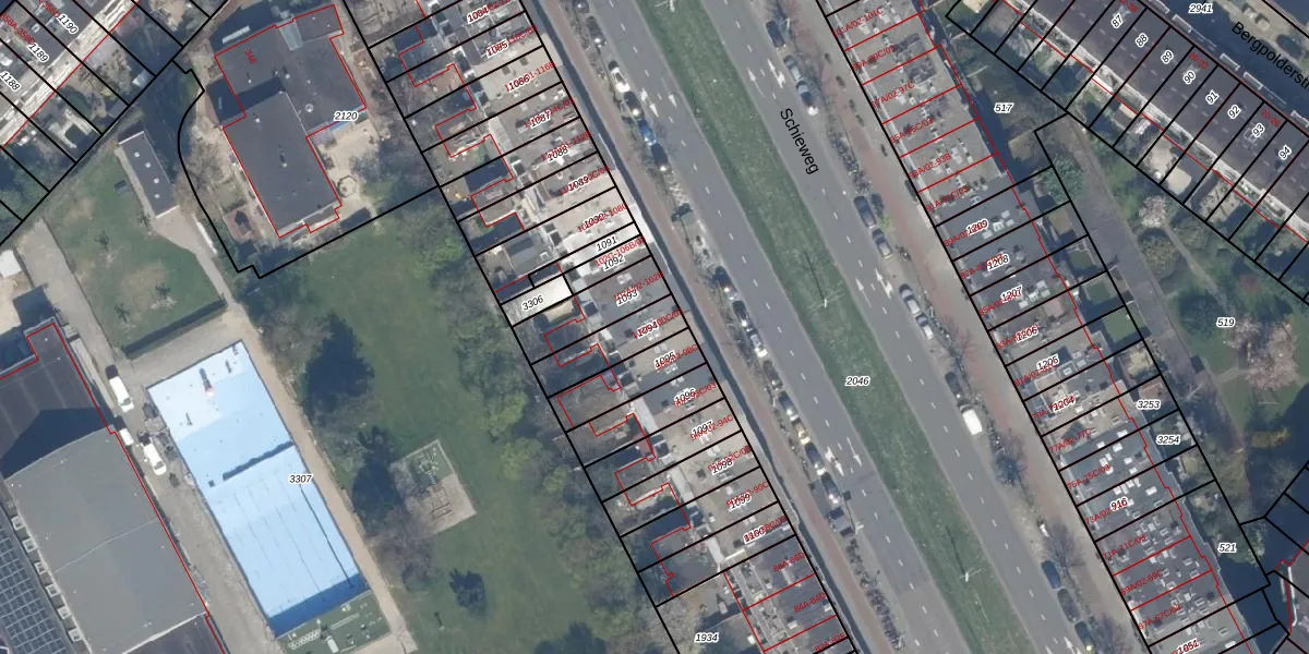 Schieweg 100-C-03 is gelegen op kadastraal perceel RTD10AB1094. Deze kadastrale aanduiding is uniek en wordt gebruikt door het Kadaster om eigendomsrechten en andere zakelijke rechten vast te leggen. Het perceel maakt onderdeel uit van de kadastrale gemeente Rotterdam.