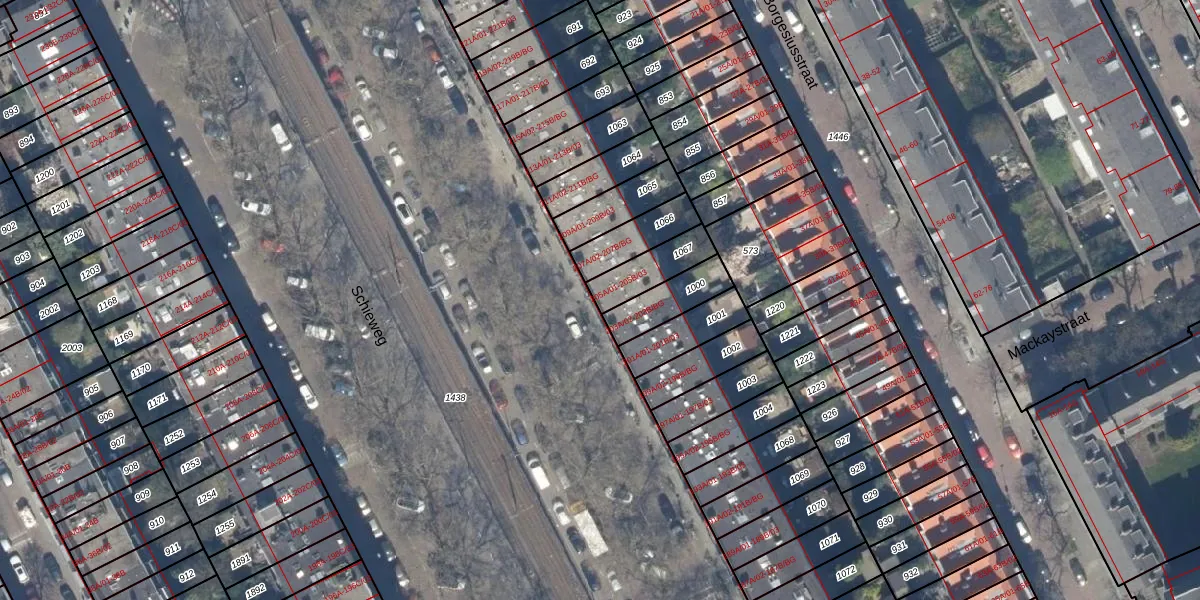 Schieweg 205-A-01 is gelegen op kadastraal perceel RTD10AB1067. Deze kadastrale aanduiding is uniek en wordt gebruikt door het Kadaster om eigendomsrechten en andere zakelijke rechten vast te leggen. Het perceel maakt onderdeel uit van de kadastrale gemeente Rotterdam.