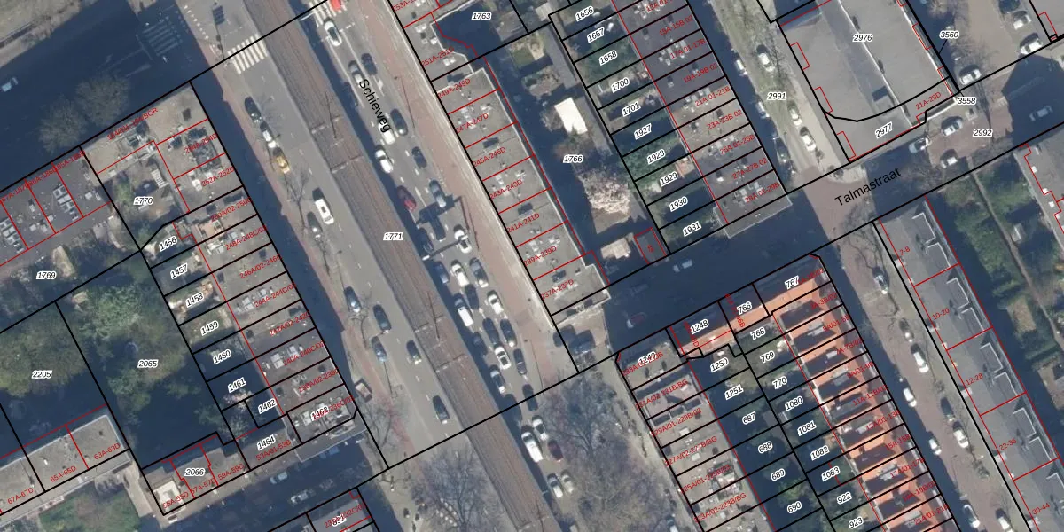 Schieweg 239-B is gelegen op kadastraal perceel RTD10AB1766. Deze kadastrale aanduiding is uniek en wordt gebruikt door het Kadaster om eigendomsrechten en andere zakelijke rechten vast te leggen. Het perceel maakt onderdeel uit van de kadastrale gemeente Rotterdam.