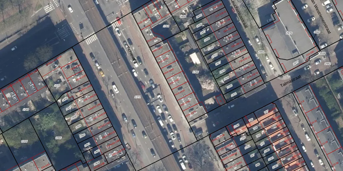 Schieweg 243-D is gelegen op kadastraal perceel RTD10AB1766. Deze kadastrale aanduiding is uniek en wordt gebruikt door het Kadaster om eigendomsrechten en andere zakelijke rechten vast te leggen. Het perceel maakt onderdeel uit van de kadastrale gemeente Rotterdam.