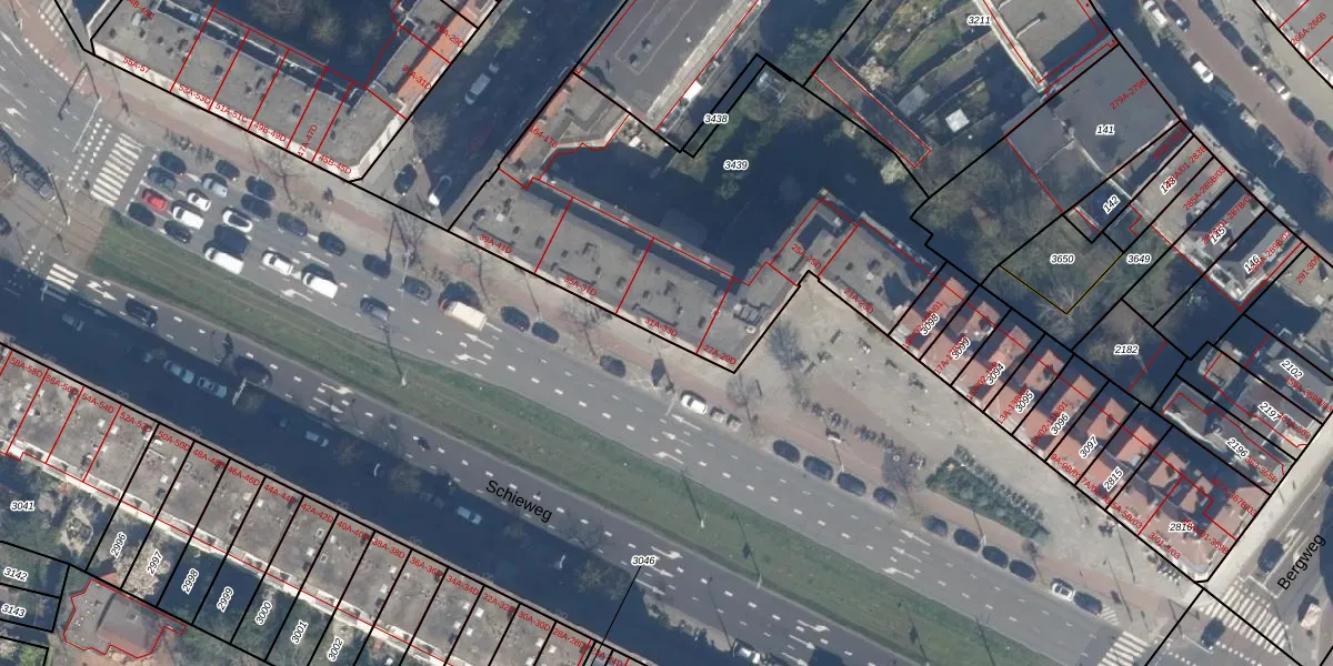 Schieweg 33-C is gelegen op kadastraal perceel RTD10AB3439. Deze kadastrale aanduiding is uniek en wordt gebruikt door het Kadaster om eigendomsrechten en andere zakelijke rechten vast te leggen. Het perceel maakt onderdeel uit van de kadastrale gemeente Rotterdam.