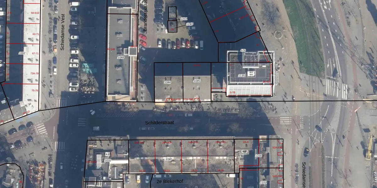 Schilderstraat 59-A is gelegen op kadastraal perceel RTD04AG1045. Deze kadastrale aanduiding is uniek en wordt gebruikt door het Kadaster om eigendomsrechten en andere zakelijke rechten vast te leggen. Het perceel maakt onderdeel uit van de kadastrale gemeente Rotterdam.
