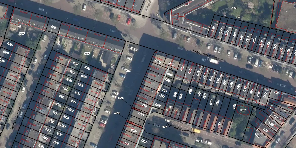 Het adres is gelegen op perceel 5707 in de sectie B en de kadastrale gemeente Charlois. De kadastrale aanduiding is aldus CLS00-B-5707. De gemiddelde perceelgrootte in Charlois is 1147,69 m². Dit perceel is kleiner: de perceeloppervlakte bedraagt 104 m². De grootste perceeloppervlakte in de kadastrale gemeente is 1,09 km². De kleinste oppervlakte bedraagt 0 m². Op het perceel zijn 3 adressen aanwezig. In de Basisregistratie Kadaster (BRK) werden de grenzen van het perceel geregistreerd op 12-05-2003.